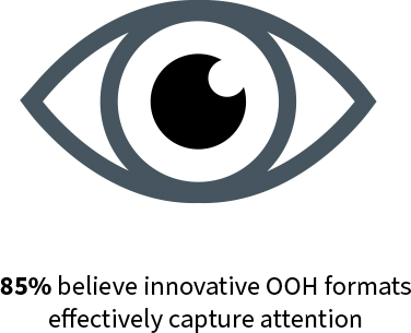 Innovative OOH formats including, but not limited to, projections, lenticular posters, and sound-enabled transit tunnels, are an extremely effective means of capturing attention, with 85% noting this as being the case.