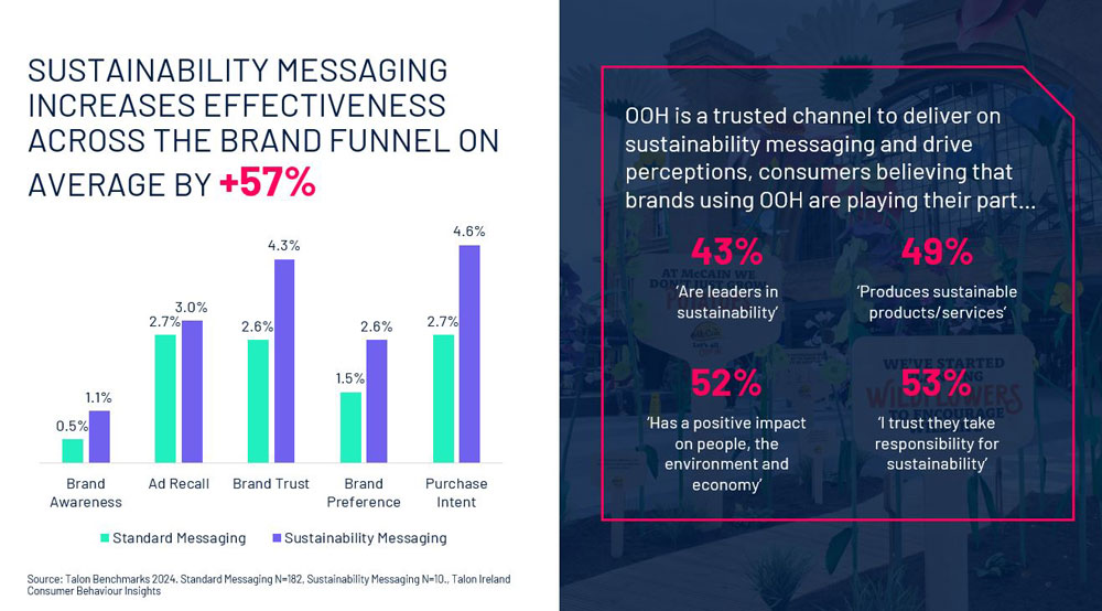 The final part of our ACES – sustainable – highlights the growing importance of balancing creativity with responsibility as we approach this Christmas season. Consumers are becoming increasingly aware of the environmental impact brands can have. According to our research, Irish consumers believe brands make a positive contribution. Sustainable advertising not only supports the planet but also increases effectiveness along the brand funnel, driving an average uplift of +57%. It even primes sustainable perceptions in other channels, particularly online social media, with a 5.8% average increase.