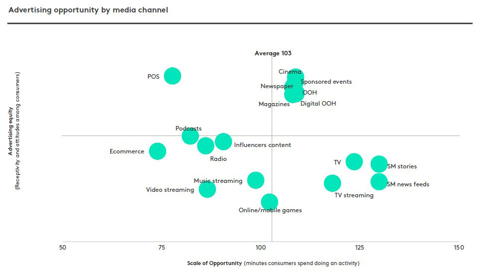 The media landscape is fragmented, and changes quickly. Ad preference and exposure time are important factors to consider while making media decisions, Consumers prefer in-person media channels and are more receptive to particular media channels including point of sale along with Classic and Digital OOH. This, aligned with scale of exposure magnifies the attention capabilities of OOH.
