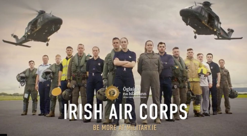 Directed by Michael Geoghegan and produced by Gary Moore of Saturday Films, the film was shot over three days over the Irish Sea and Casement Aerodrome. Working with Lt. Col. Maeve O’Grady, Comdt. Brian Lane, Capt. Neill Dunne, Capt. Colin Treacy and Lts. Aaron Bolas and Gavin Delaney, the campaign is intended to increase the number of recruits to the Irish Air Corps.