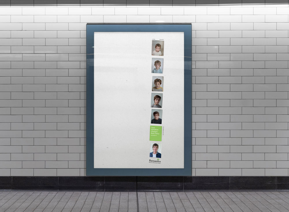 The agency then worked with Barnardo’s to select the best images that exemplify authentic feelings, “representing each stage of a child’s potential journey, from vulnerability to fear and anger to despair. Until the most important image of all – a young adult with a look and feeling of genuine hope, thanks to the work of the charity.”