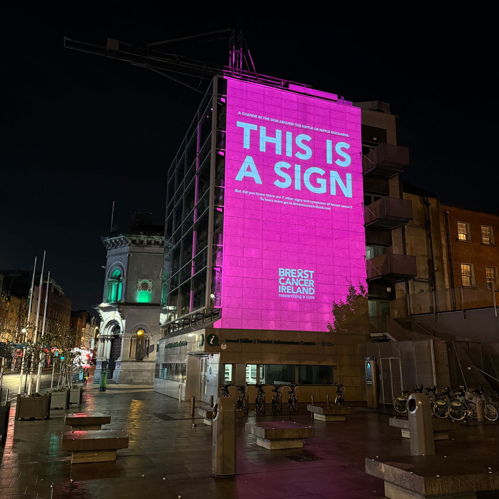 OOH executions include a 52ft x 26ft light projection on to Barnardo Square in Dublin city centre, 48 sheets, Luas Columns, AdShels and Digipods, ensuring that key campaign messages become an almost unmissable part of daily life during the month of October.
