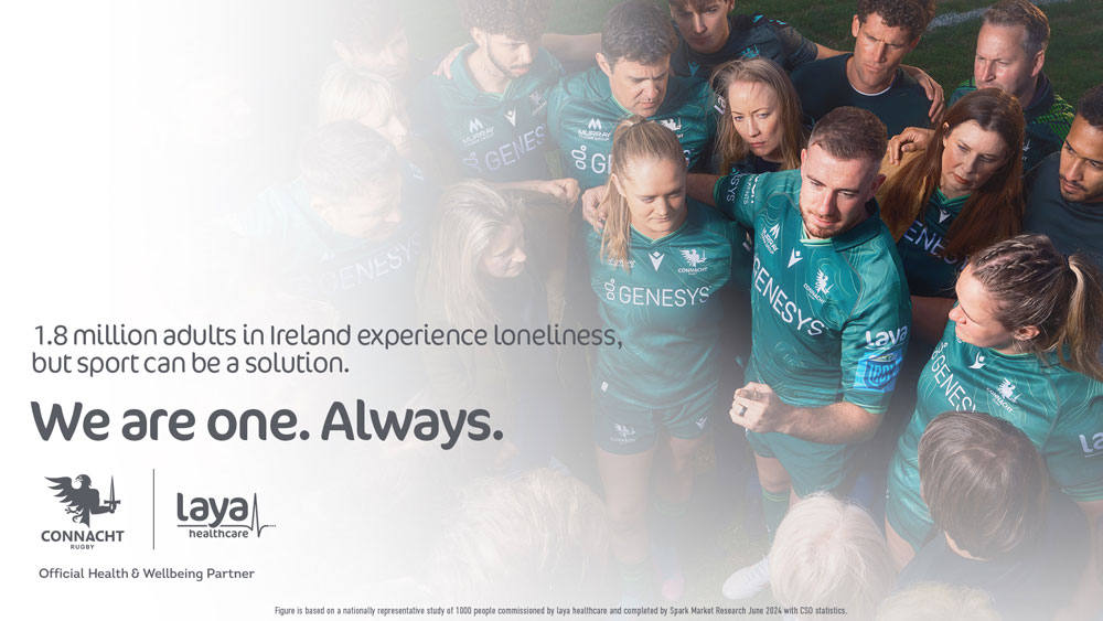 Laya healthcare has marked its sponsorship of Connacht Rugby, Leinster Rugby and Munster Rugby with a new campaign to help combat loneliness in Ireland and to highlight the power of social connection offered by the rugby community.