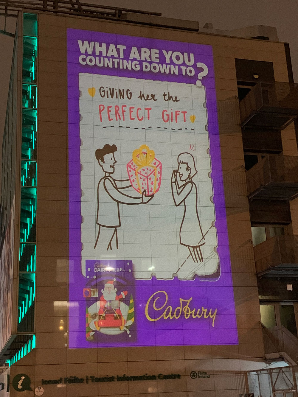 To further bring this campaign to life, special projections took place across Dublin last week inviting people to share their favourite Christmas traditions and what they’re most looking forward to this holiday season. A graphic designer illustrated these cherished memories in real time, with the artwork being projected for all to see, creating a captivating spectacle that embodies the essence of ‘Cadvent.’