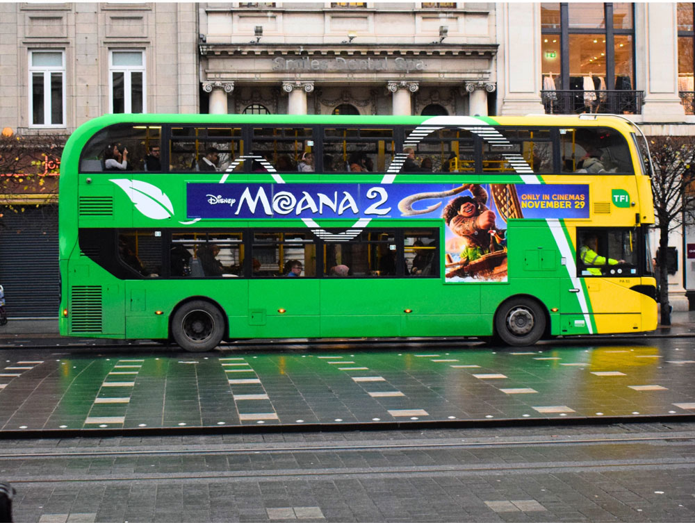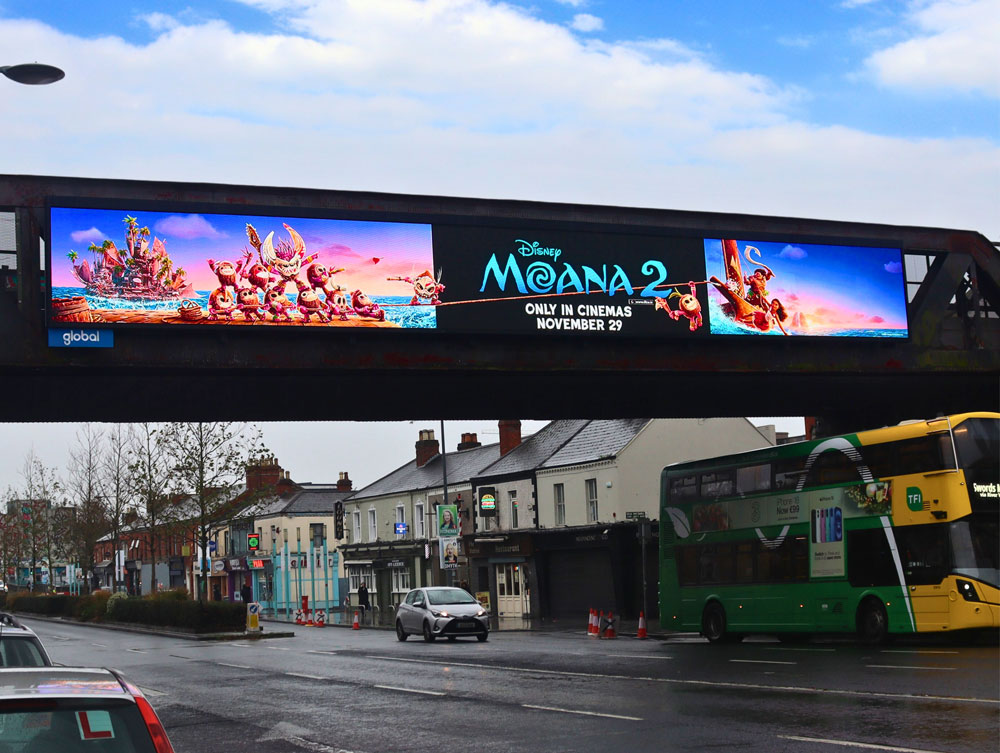 The campaign goes beyond traditional formats to deliver a more immersive experience at Connolly Train Station. A sound-activated tunnel mimics the gentle crash of ocean waves, providing a sensory escape during Dublin’s winter chill. In Dundrum Town Centre, a LUAS corridor wrap envelops pedestrians in Moana 2’s vibrant world, keeping the movie top of mind for families near the point of purchase at the adjacent Movies@Dundrum.