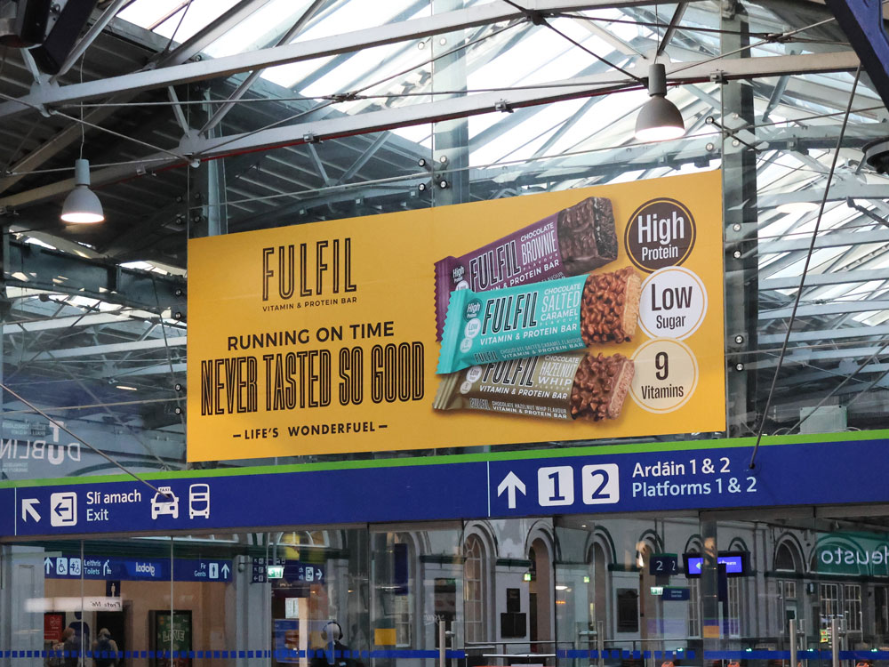 The campaign’s mix of formats connect FULFIL with its audiences wherever they are, both physically and emotionally. A fully wrapped Pearse Station underpass delivers unmissable scale, while retail-focused formats like iVisions ensure contextually relevant messaging at key purchase moments. Roadside formats extend the campaign’s reach, while high-impact full-motion galleries at Connolly, Pearse, and Tara Street stations captivate commuters with energising creative while they’re on the go.