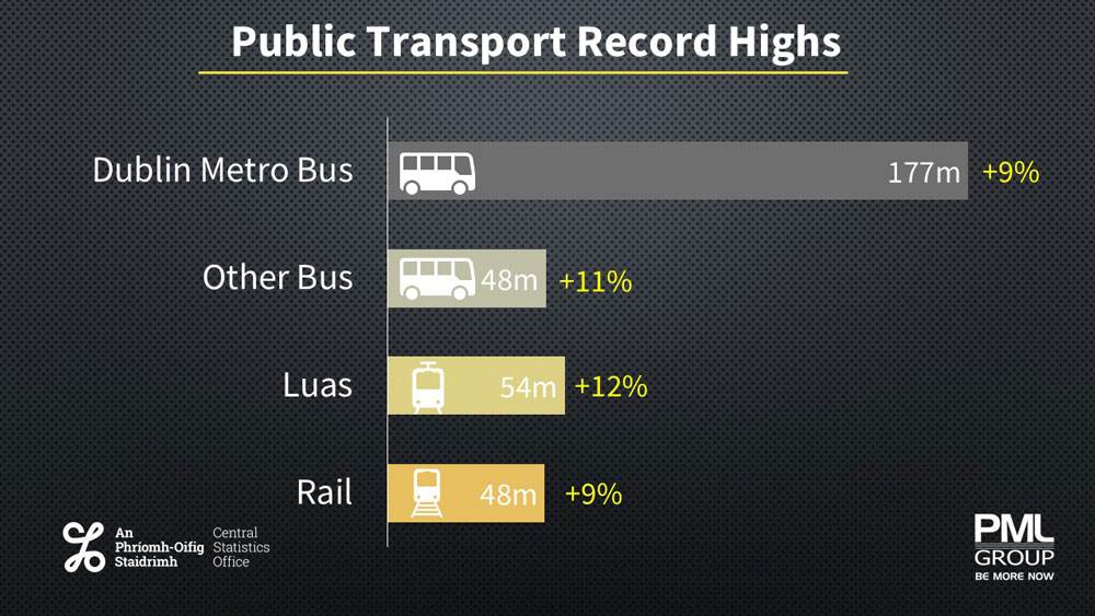 Having reached 177 million, over half (54%) of these journeys took place on Dublin buses.