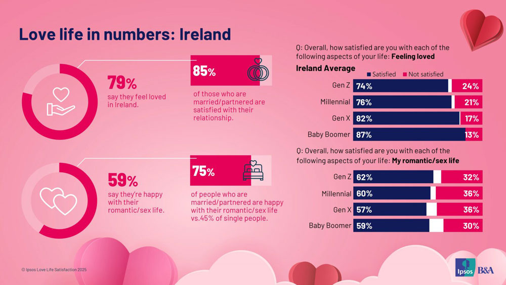 The 2025 Love Life Satisfaction Survey conducted by Ipsos across 30 countries – including Ireland – explores people’s attitudes to love, their sex lives and their relationship with their partner. For the first time it also includes a Love Life Satisfaction Index combining various aspects of love into a single indicator in order to understand differences across countries and regions.