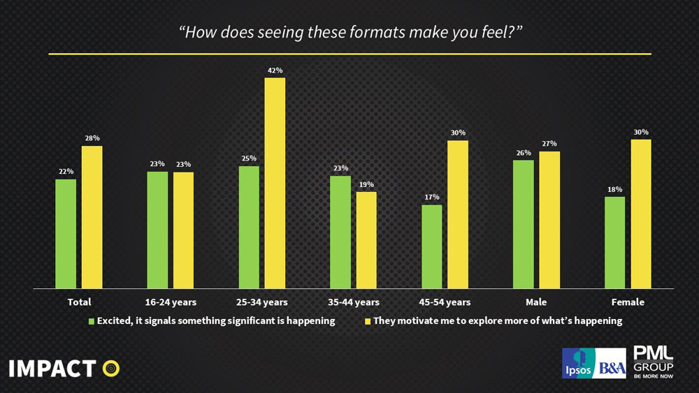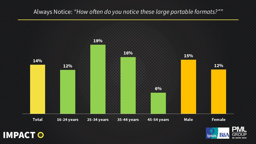 Gender and age differences also play a role in their effectiveness. Males (15%) were slightly more likely than females (12%) to state they always notice these formats, though overall recall rates remained similar at 24% for males and 20% for females.