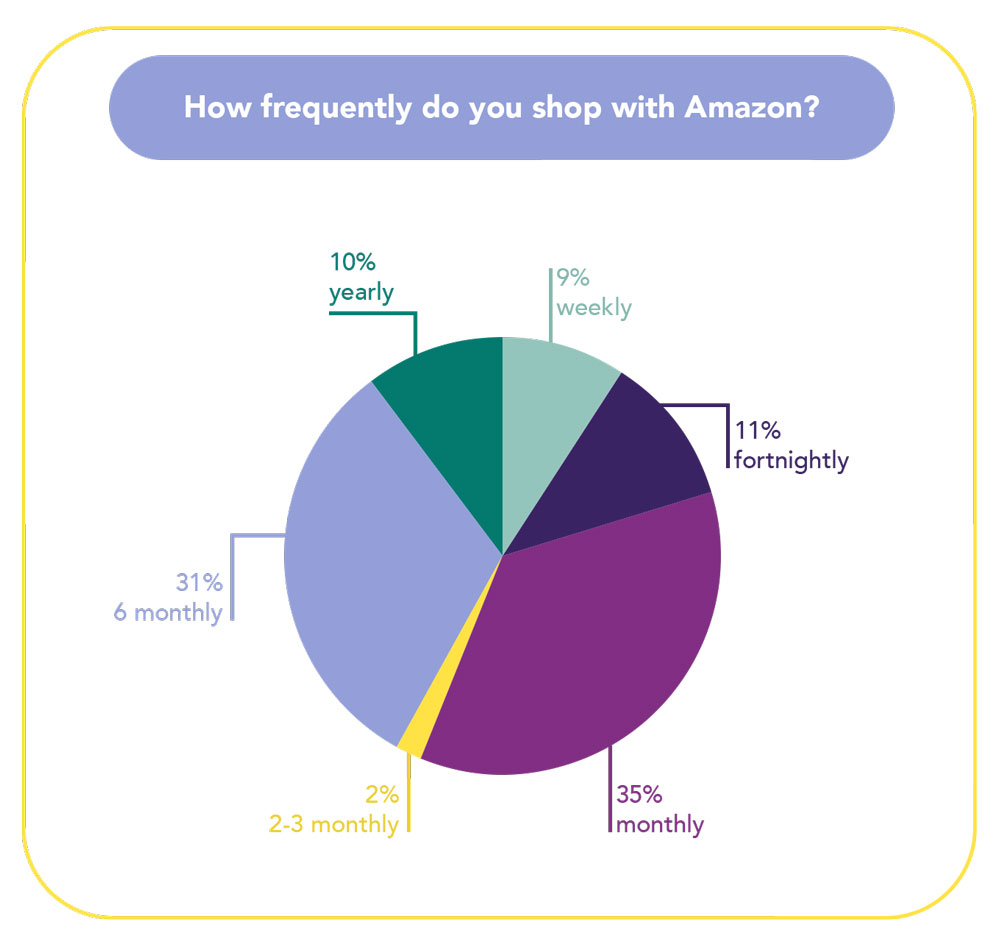 Regular Shoppers: 35% of people in Ireland buy from Amazon at least once a month, while 18% of Dubliners are shopping on the site every single week.