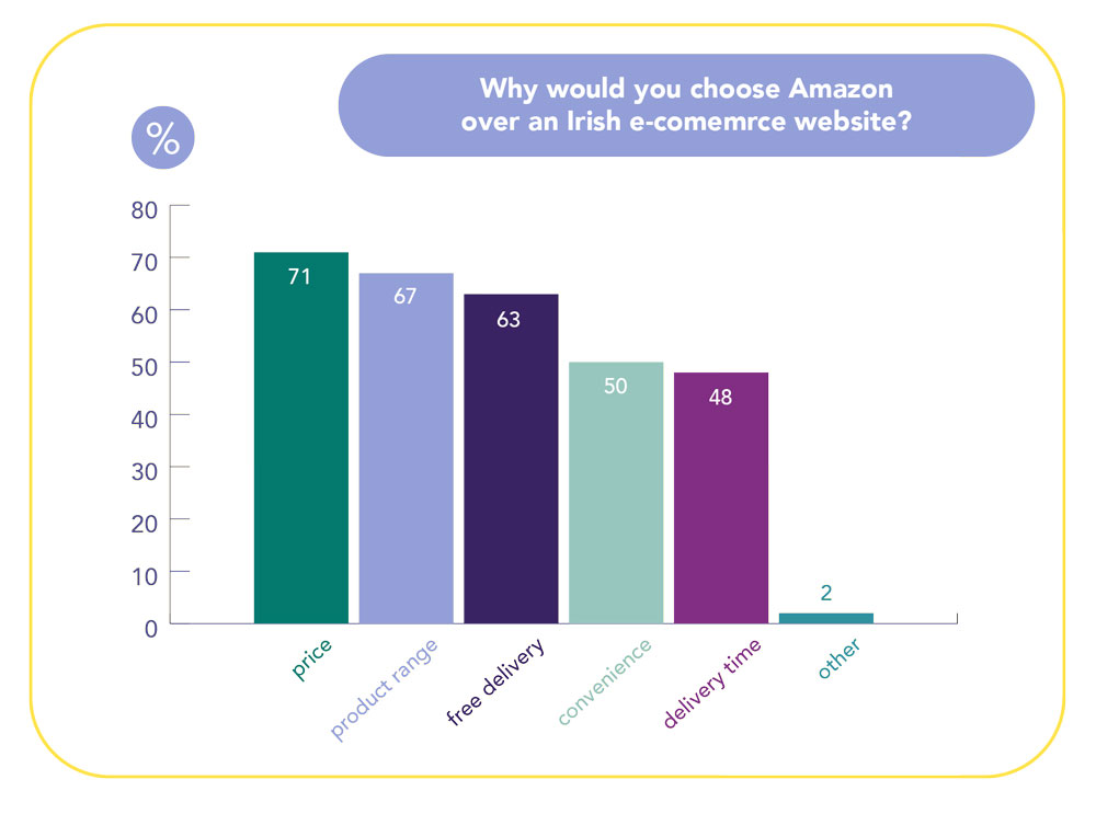 When asked why they would choose Amazon over an Irish e-commerce website – price, product range, and free delivery were cited as the top reasons.