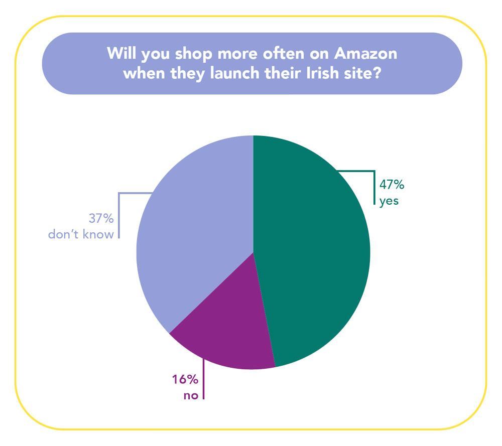 An Expected Surge in Spending: 47% of those surveyed say they will shop more frequently once Amazon.ie is launched, with 37% still on the fence.