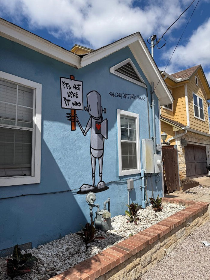 At a small, blue, residential house, on the edge of Austin, I experienced this first hand. Lively Grit Daily House is a private home, reimagined as a shoulder festival ‘venue’ for just a few days. Here, in the sunny back garden, I caught Emily Ross’s talk on ‘Just Evil Enough’, her newly published subversive marketing handbook. Ross challenges the idea of being a ‘growth hacker’ and instead recommends being a ‘zero day marketing architect’ – finding novel, innovative (but legal) ways to capture attention.