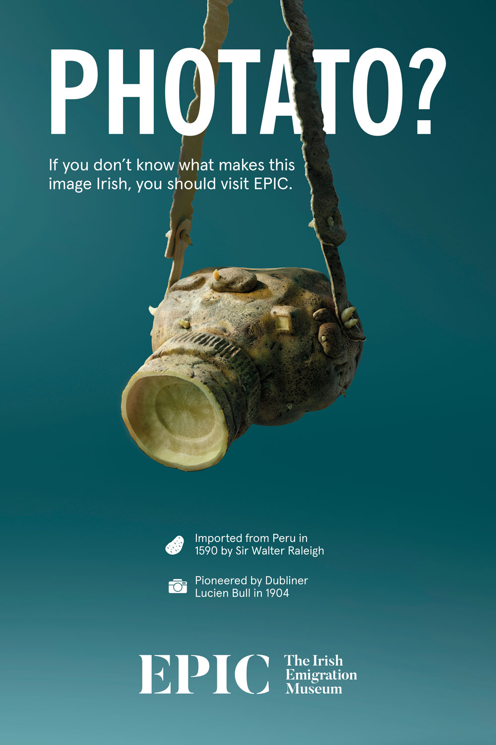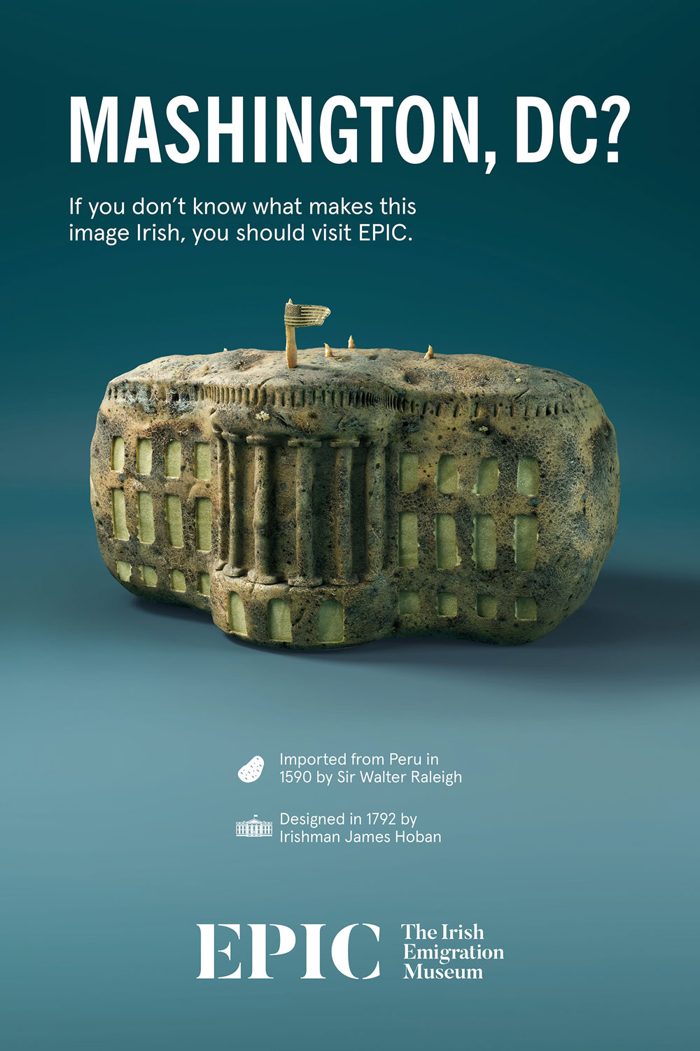 Paddy Dunne, copywriter at the Public House added: “While it’s funny to have a legitimate reason to say things like ‘Spudmarine’ and ‘Mashington, DC’, it also conveys quite an important message. The stories that can be discovered by simply visiting EPIC will open your eyes to the massive impact us Irish have had on the world, and it’s always a pleasure to help highlight these within a campaign.”