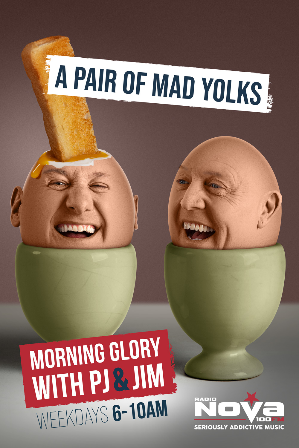 Radio Nova has unveiled a bold new marketing campaign to promote its hit breakfast show, Morning Glory with PJ Gallagher and Jim McCabe. The cheeky campaign, created by Bloom Advertising, features the irrepressible duo reimagined as boiled eggs.