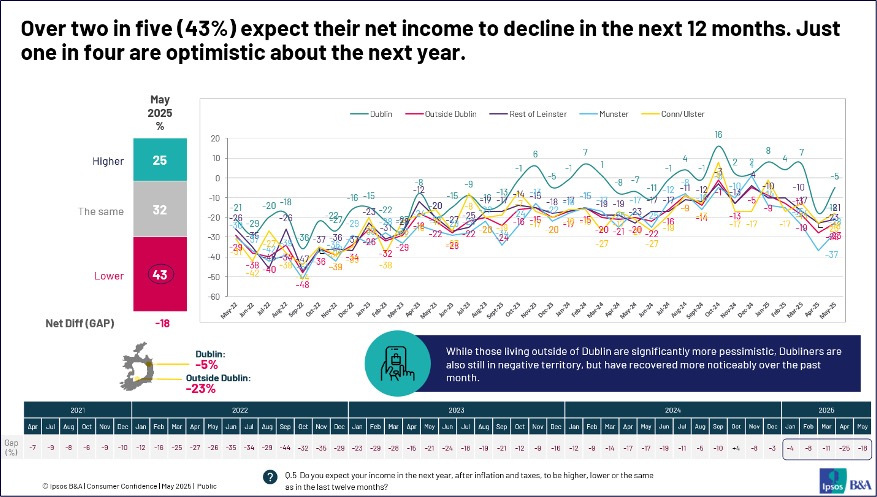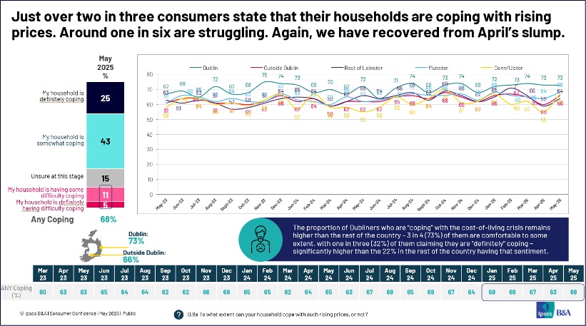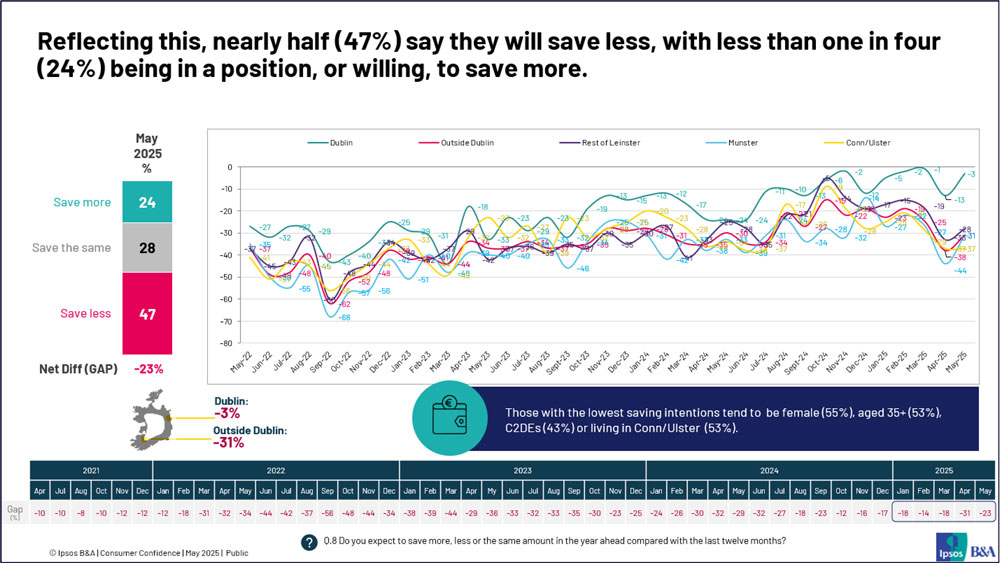 This wave of the Ipsos B&A Consumer Confidence Barometer was conducted from the 5th – 20th May 2025 following the shock of the transatlantic tariff announcements in April.