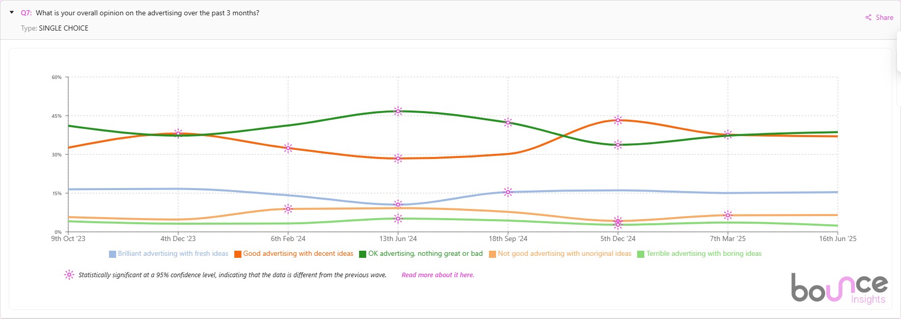 While the majority of respondents thought this wave’s advertising was only ‘OK’ and enjoyed it less than our previous two waves, the number of respondents saying the advertising was ‘good’ has jumped significantly versus this time last year, from 28% to 37%. Hopefully a sign of improving creative across the board with more interesting work to come in our next wave.