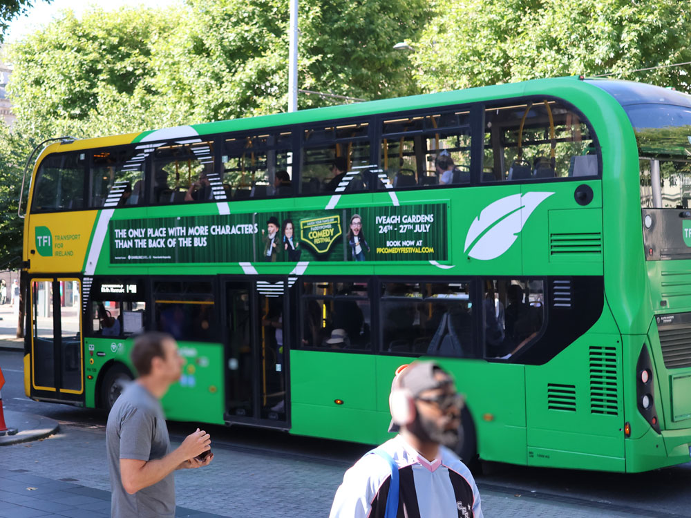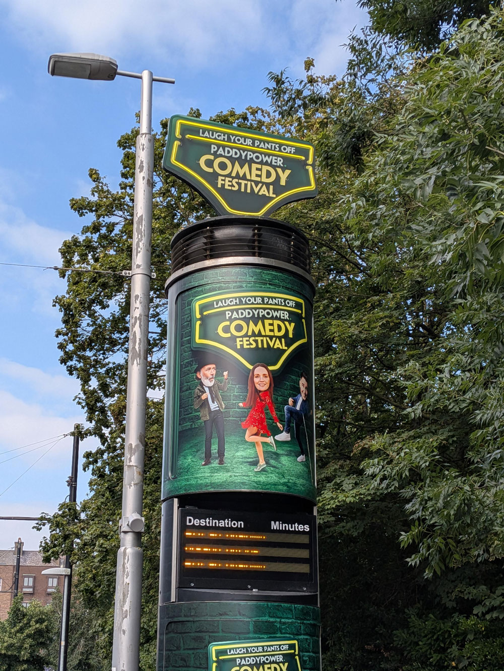 The wider campaign elements provided the setup, with large format billboards, bus shelters, and Supersides dishing out one-liners like “Nothing funnier than a lad from Mayo trying to explain crypto” and “More class acts than a Leaving Cert oral.” Large format roadside and digital 6s at roadside and transport locations drive the messaging closer to the festival venues complete with contextual messaging to capture attention and drive interest with a dash of humour.