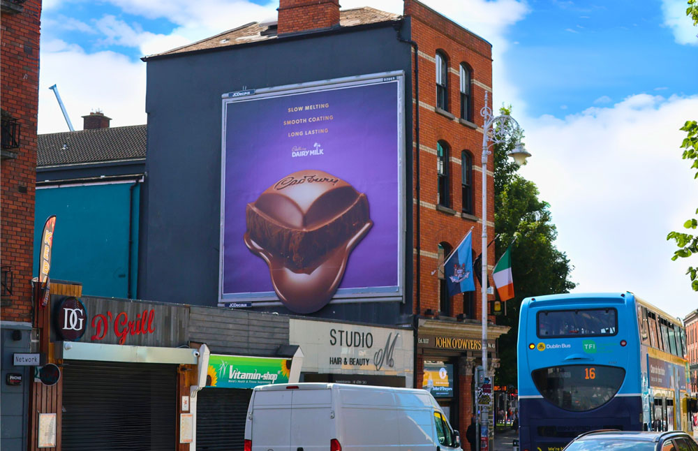 That message quite literally melts into view on JCDecaux’s Golden Square in Aungier Street, where a larger-than-life Dairy Milk segment, complete with glossy, textured finish, appears to ooze gently beyond its frame. It’s a premium visual execution that captures the brand’s signature smoothness in a way that feels both premium and attention-grabbing.