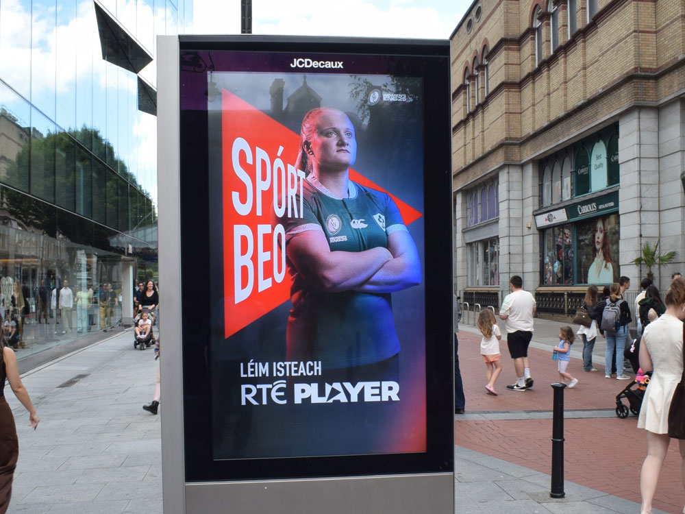 Live sport is front and centre on the streets this week as RTÉ Player rolls out a nationwide OOH campaign built around its Dive Into Live platform. Football, golf and rugby all feature, with the UEFA Champions League back in action, the Women’s Rugby World Cup entering its 3rd week, and the Amgen Irish Open teeing off yesterday.