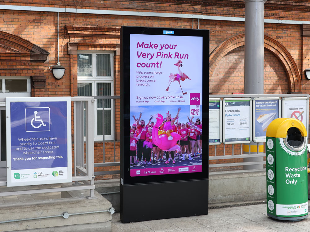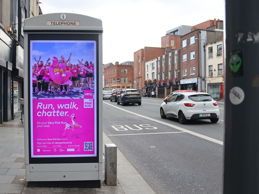 Breast Cancer Ireland is filling the streets with colour and purpose this September as the Very Pink Run makes its return, powered by an extensive Out of Home campaign planned by The Engine Room and PML. The campaign brings vibrant pink creative from The Gate to life across a wide mix of formats, including Supersides, 48 Sheets, Metro/Digipoles, Transvision, and small roadside digital formats.