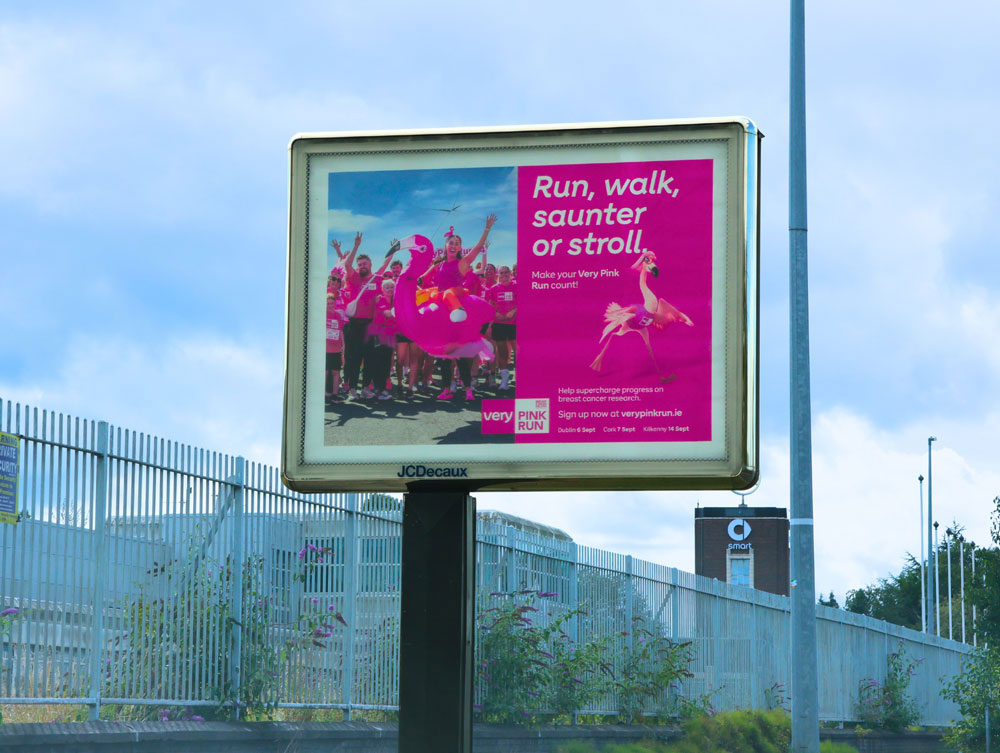 “With a vibrant creative and important campaign message it was a pleasure to work with Breast Cancer Ireland and PML to deliver this campaign for Very Pink Run across OOH formats nationwide. Utilising options in high footfall areas to drive sign ups for the event and brand awareness for such an important cause.” – Cait Maguire, MD, The Engine Room