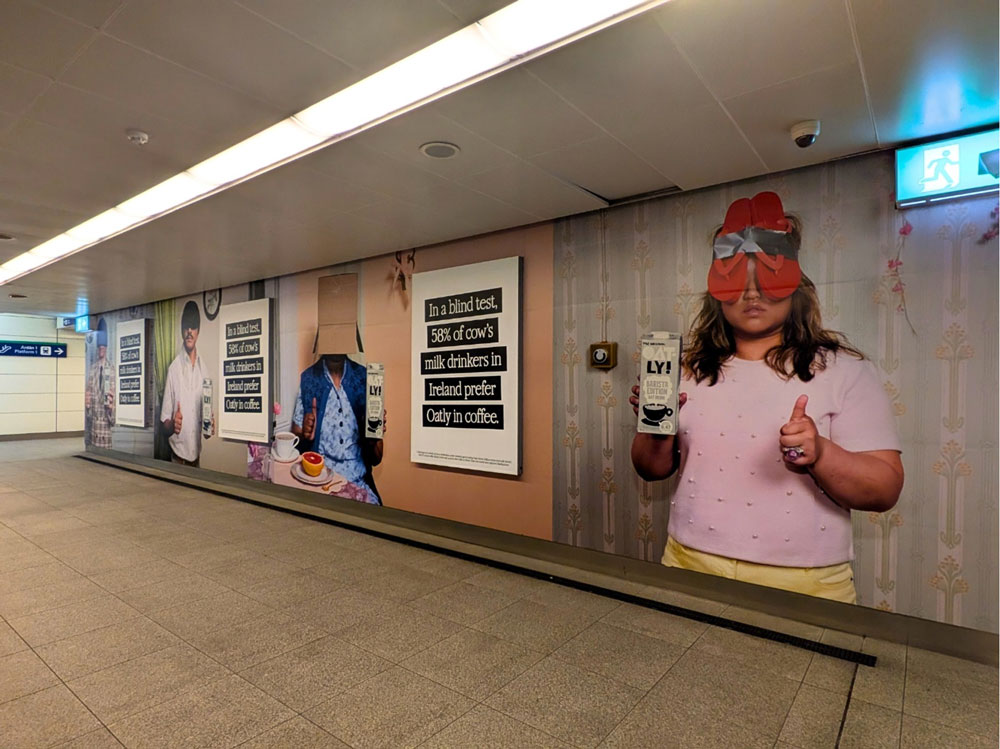 OOH gives the creative the stage it deserves. Large formats like 96 and 48 Sheets deliver scale on the city’s busiest arteries, while Luas Portraits, Adshel Live, and Transvision screens extend its reach across everyday journeys. In Connolly and Pearse stations, full tunnel and digital gallery takeovers push the campaign further still, surrounding commuters with Oatly’s trademark mix of confidence and wit.