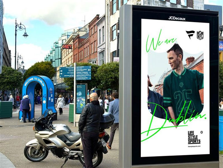 The NFL and Fanatics, its retail partner, has opened a temporary store in Dublin ahead of the sport’s inaugural game at Croke Park. Located at St Stephen’s Green, the 600 sqm pop-up offers fans a chance to shop official NFL jerseys, apparel, and merchandise from all 32 teams. The Tenth Man has placed a campaign on Digital 6s around the centre targeting enthusiasts as the shop and play in advance of the contest.