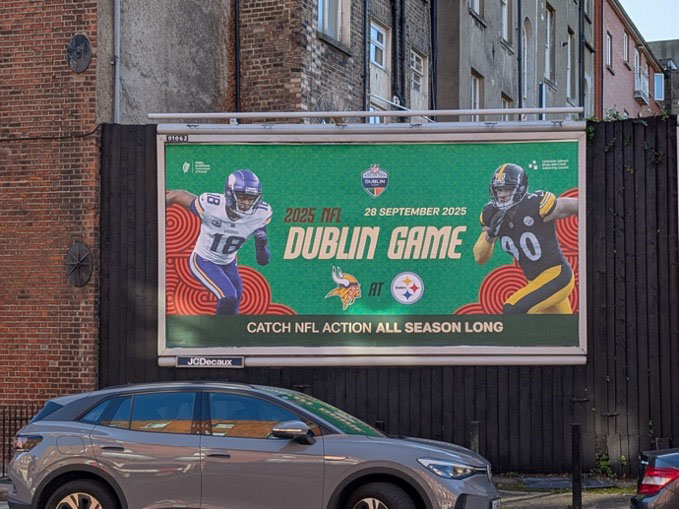 The Pittsburgh Steelers will face off against the Minnesota Vikings at Croke Park this Sunday in the first regular season NFL game to be staged in Ireland. This week brands are ahead of the game in the rush to OOH.