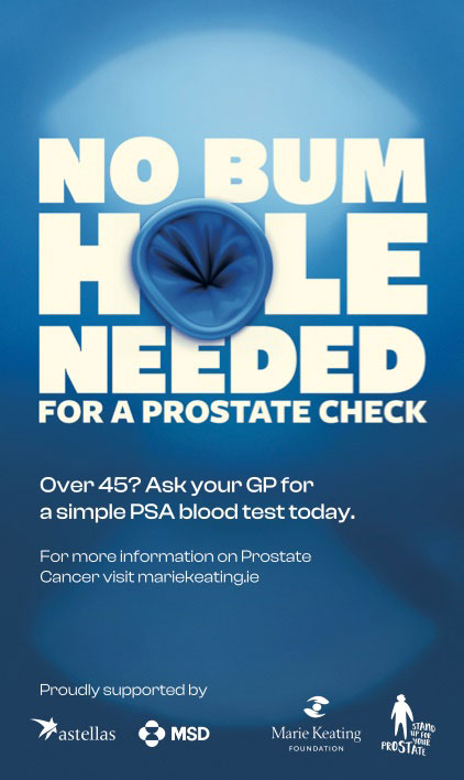 Helen Forristal, Urology Nurse Specialist and Director of Nursing Services at the Marie Keating Foundation said: “The reality is that early detection often starts with a straightforward PSA blood test – and that’s more than likely it. No awkward exams, no back-door business. If men remember just one thing from this campaign, it’s that checking your prostate health doesn’t need to be a pain in the bum. Humour is helping us spark conversations that can literally save lives.”