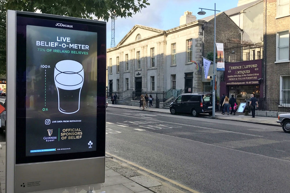 Dynamic content has become integral to that connection. Across this year’s campaigns brands have used real-time messaging to extend the match-day story into public space. Eight in ten Dubliners find live, event-based DOOH informative, memorable and effective, while 73 % say they’re more likely to act on an ad when it appears in a place that feels relevant to them (iQ). When creative reflects what’s happening in the moment, the line between spectator and participant begins to blur, and attention follows.