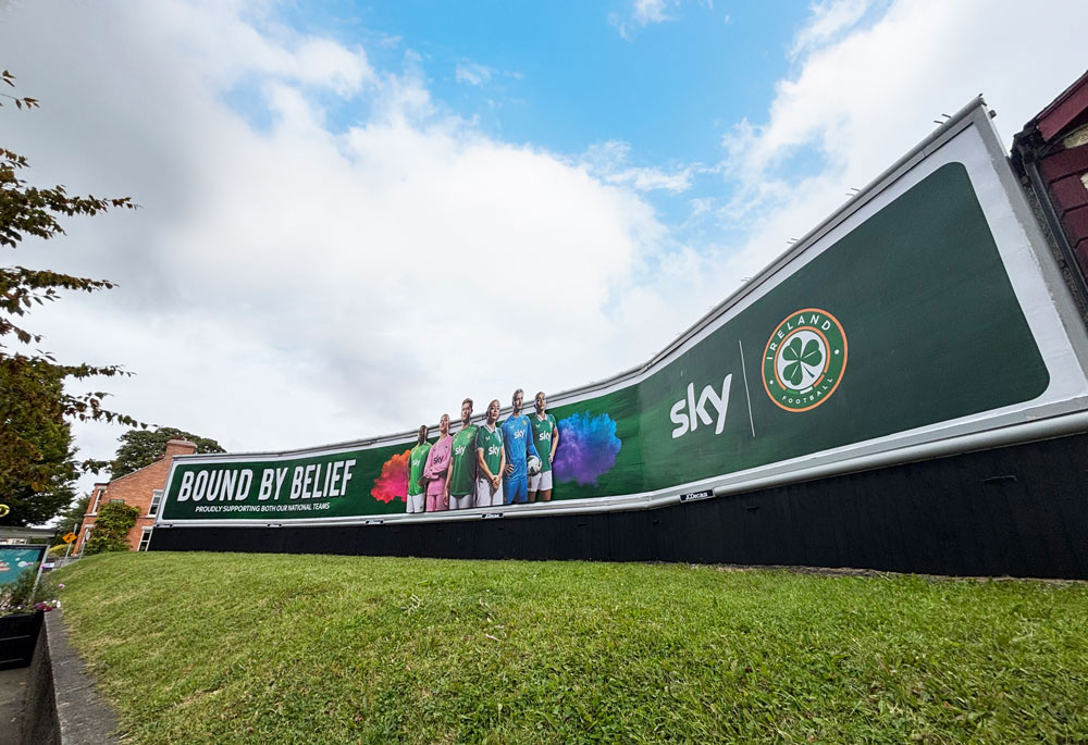 Sky’s Bound by Belief 240 Sheet in Terenure turned a key Dublin junction into a premium sports landmark, with a 2D extension lifting players out of the frame and echoing the movement and intensity of live football. The build carried the weight of a bigger platform presence, and it played its role as a genuine street-level statement rather than a simple campaign flag.