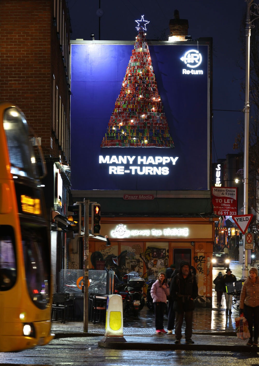 Re-Turn is using the festive period to launch its new ‘Re-turn it Right’platform with a bespoke special build Christmas tree made from 5,000 Re-turned cans at Wexford Street’s Golden Square wishing passers-by ‘Many Happy Re-turns’ for the festive period.