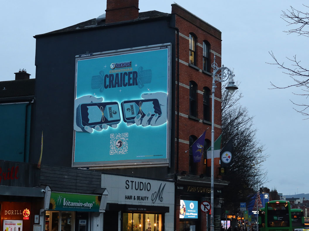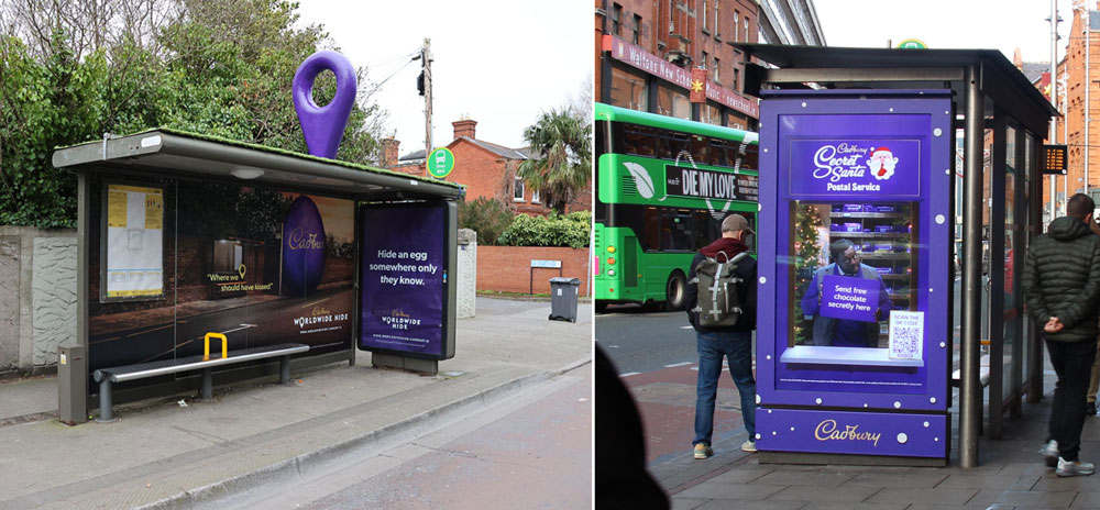 Cadbury delivered one of the year’s strongest retail-led moments with the launch of its new Dairy Milk Mini Eggs small bar. The tease-and-reveal storefront on Leinster Street South culminated in a live sampling moment with the hosts of the I’m Grand Mam podcast, turning a product update into a public event. That physical storytelling carried through into the brand’s annual Worldwide Hide and Secret Santa promotional periods across Easter and Christmas, turning bus shelters into a giant location pin and digital roadblock takeover for each respective activation.