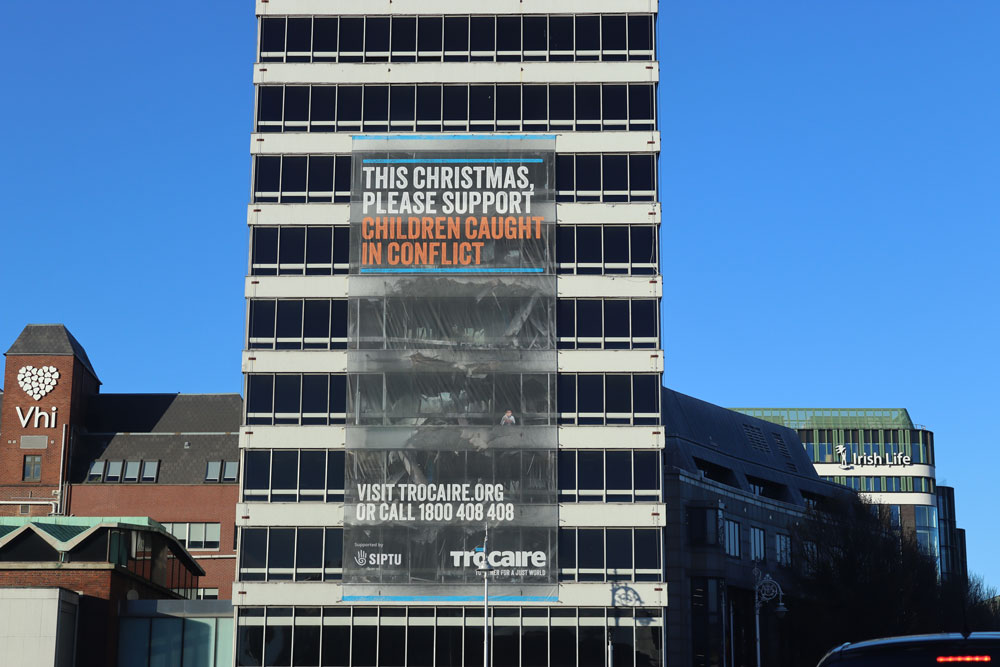 The Public House has unveiled a striking Christmas appeal for Trócaire, transforming Dublin’s Liberty Hall into a powerful visual statement on the impact of conflict on children.