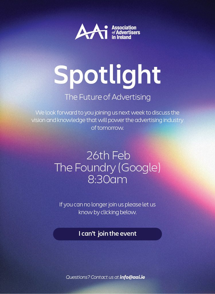 “We are delighted to be celebrating our 75th anniversary this year. And what better time to discuss “A Spotlight on Advertising” with a fabulous line-up of speakers, people with the professional & practical credentials to inspire all industry stakeholders for the future,” said Barry Dooley, chief executive, AAI.