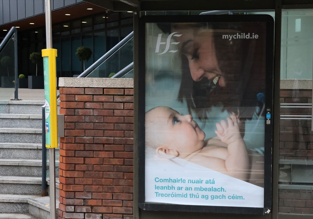 The HSE, also planned by Spark Foundry and PML, added a more human and supportive presence through Irish-language Adshel creative for mychild.ie, promoting parental guidance in a way that felt calm, accessible and rooted in daily life. In contrast to the more celebratory seasonal work elsewhere on the streets, campaigns like these showed another side of relevance at this time of year, shaped not by spectacle, but by language, identity and the public-facing role Outdoor can play.