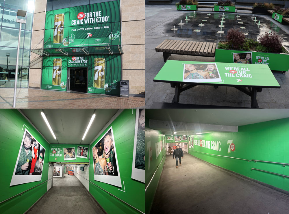 Planned by OMD and Source out of home, the brand’s ‘We’re all up for the craic’ creative extends into a wider set of formats, including a Connolly Station underpass tunnel takeover, vinyl-wrapped tables and entrance-front domination at Dundrum Shopping Centre. The result is a campaign that leans fully into the spirit of the occasion while giving the idea strong physical presence in high-footfall environments.