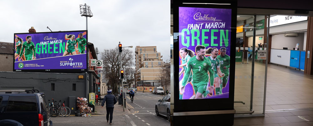 Meanwhile, ahead of Ireland’s World Cup play-off campaign, Cadbury FC is also giving its familiar purple creative a greener seasonal twist. Planned by Spark Foundry and PML, the campaign brings the Republic of Ireland teams together under a shared ‘Green March’ message, the double entendre showing how OOH can amplify moments of collective support when audiences are already emotionally engaged.