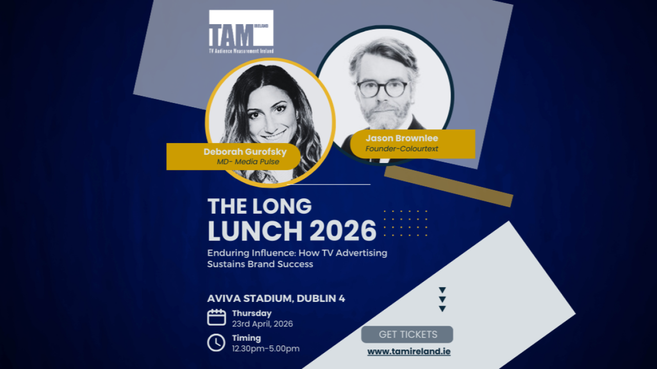 The theme of this year’s lunch is “Enduring Influence: How TV Advertising Sustains Brand Success” and TAM Ireland has lined up two well-known industry speakers to talk about the importance of TV advertising.