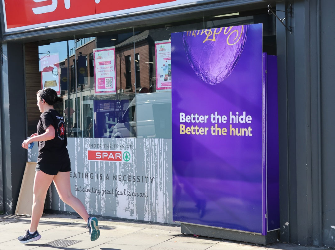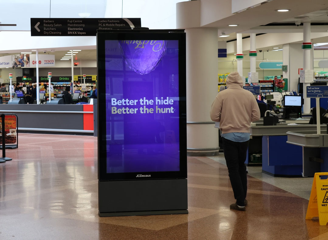 Cadbury’s Easter Egg Hunt campaign, planned by Spark Foundry and PML, is a strong example of that principle in action. Built around the line “Better the hide, Better the hunt”, the creative appeared across Adboxes, Adshel Bus Shelters, 48 Sheets, retail digital and Tesco Digiscreens.