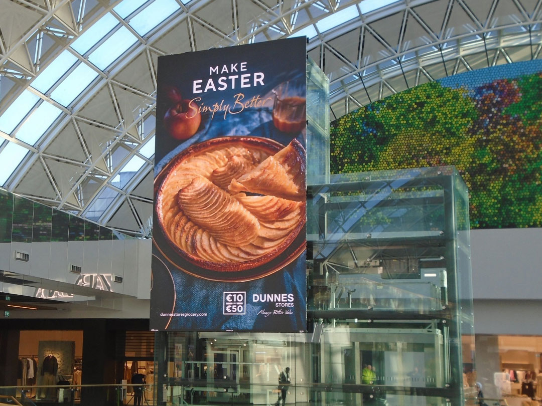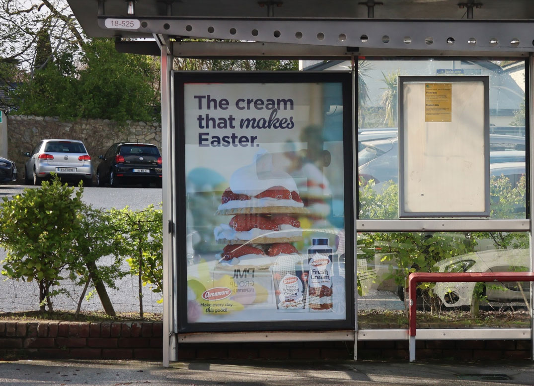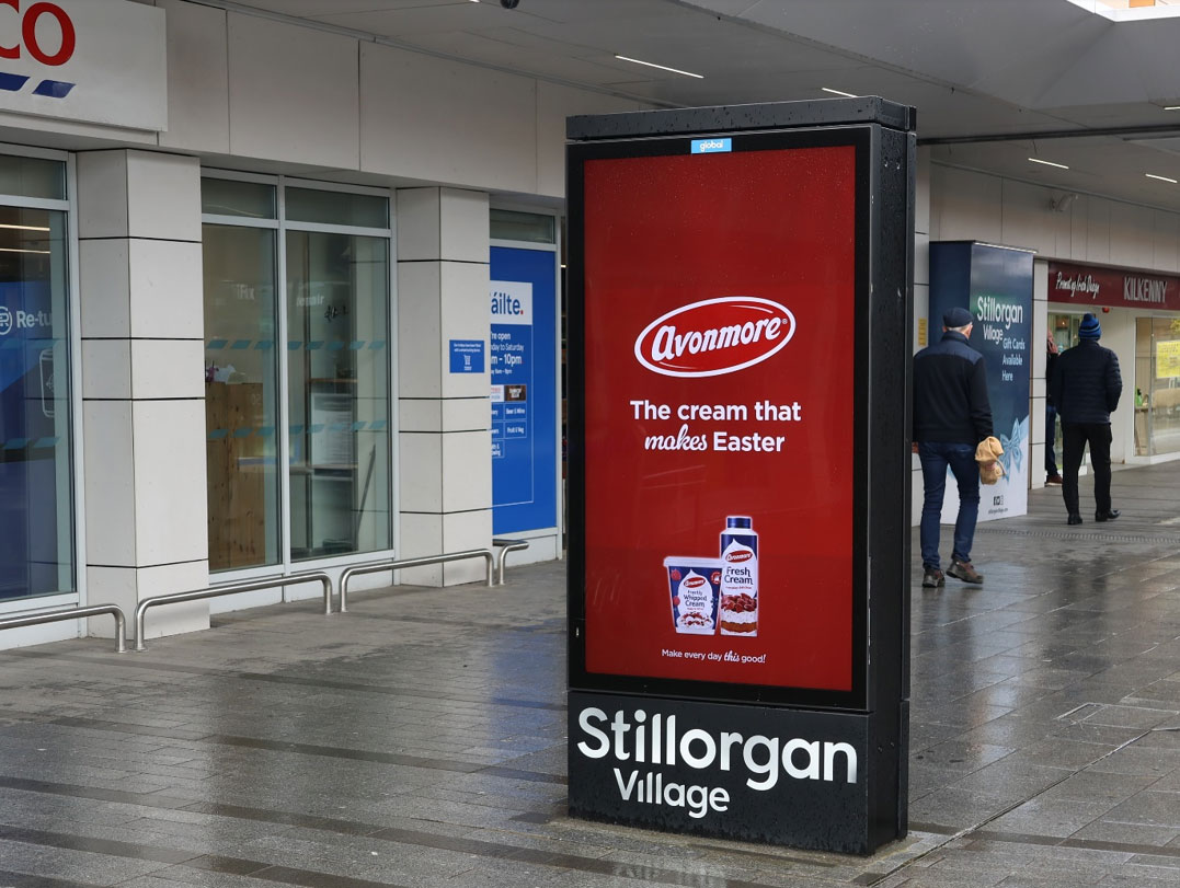 Avonmore Fresh Cream, also planned by dentsu and PML, plays a similar role from a different category angle. As a product closely tied to Easter desserts, family meals and home preparation, it benefits from appearing in more than one context. Roadside formats help establish broad awareness, while mall and retail environments bring the message closer to the shopping task itself. That is especially relevant given our research shows that 74% agree Outdoor has more impact when it appears in places that feel relevant to the brand, while 73% say they are more likely to act when an ad appears in a place that feels relevant to them.