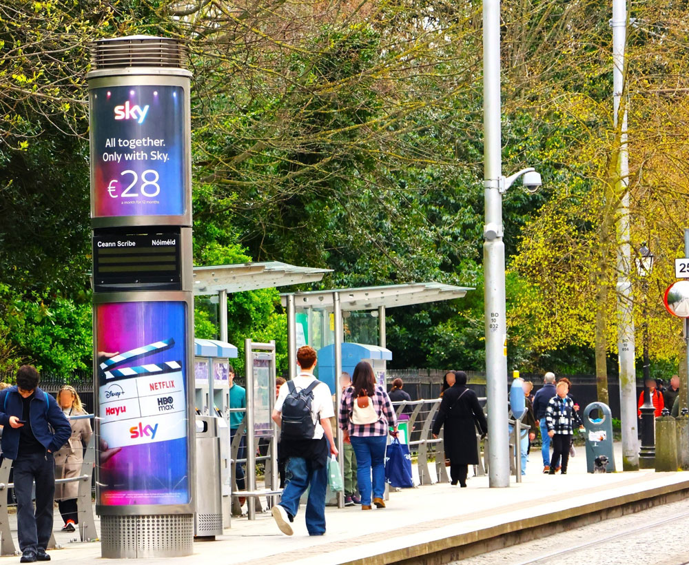 The special is only one part of a much broader campaign footprint. This cycle, Sky’s presence extends across Luas formats, bus shelters, commuter panels, station environments, classic roadside, digital roadside, mall digital and large format placements. From full motion station galleries and high street digital formats to mall screens, tram domination and large roadside impact, the campaign creates repeated encounters with audiences across multiple moments of the day. When the proposition is built around choice, value and entertainment breadth, that kind of scale matters.
