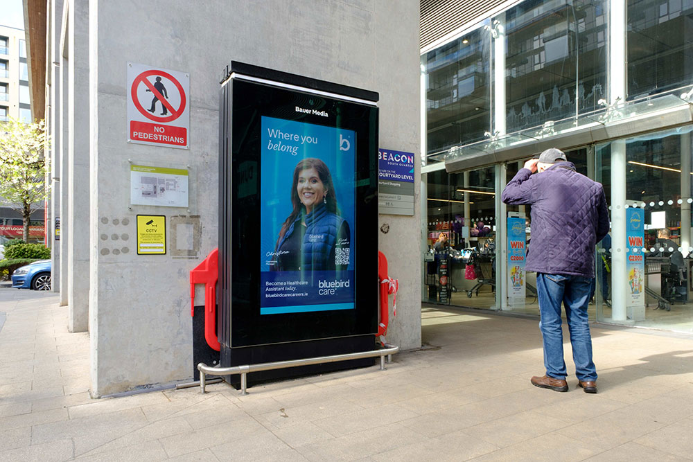 The media strategy combines a targeted mix of high impact Out of Home formats positioned across commuter routes, towns and local communities nationwide. Every execution includes a clear call to action, directing prospective candidates to bluebirdcarecareers.ie and making the journey from awareness to application simple and immediate.